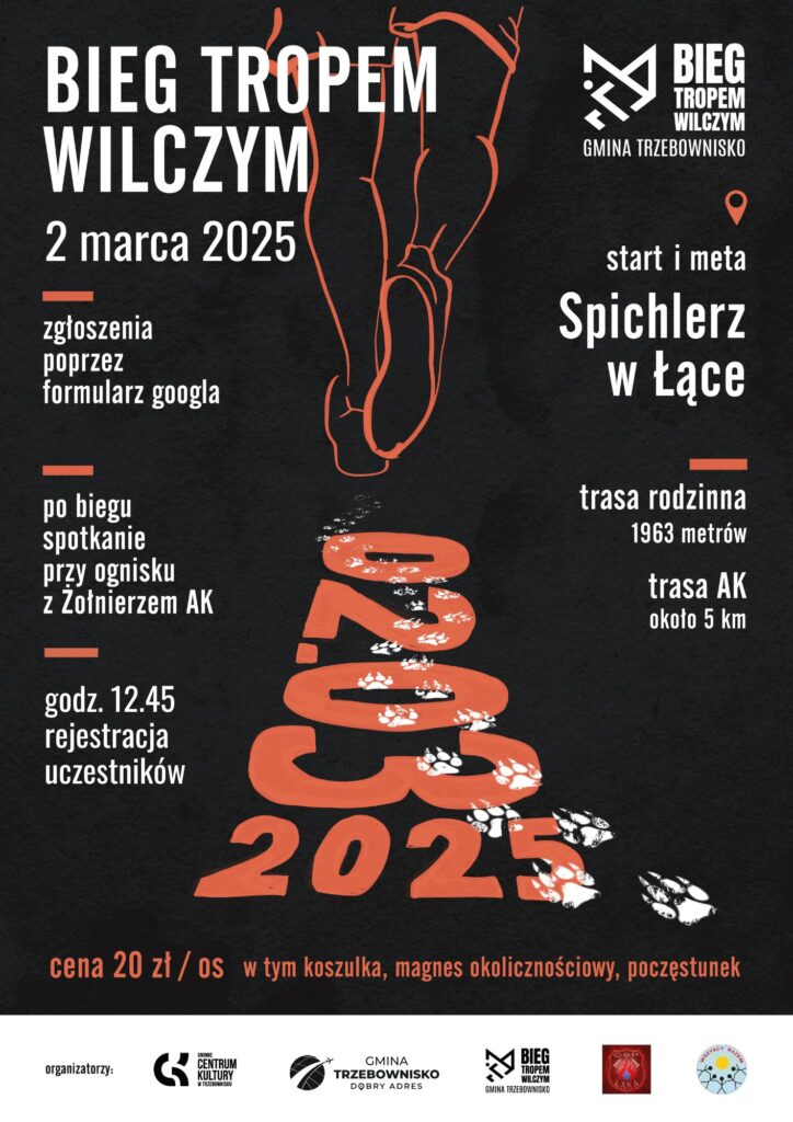 I Bieg w Gmina Trzebownisko "Tropem Wilczym". XII edycja wydarzenia na Podkarpaciu odbędzie się 𝟐 𝐦𝐚𝐫𝐜𝐚, (𝐧𝐢𝐞𝐝𝐳𝐢𝐞𝐥𝐚) 𝟐𝟎𝟐𝟓 𝐰 Ł𝐚̨𝐜𝐞. 𝐒𝐓𝐀𝐑𝐓 𝐈 𝐌𝐄𝐓𝐀 przy budynku Gminnego Centrum Kultury (Spichlerz Kultury) w Łące. DOWIEDZ SIE WIĘCEJ